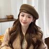 Cocoa milk coffee~ autumn and winter woolen hat: beret female Japanese ins retro brown versatile British face small painter hat