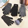 Autumn and winter velvet thickened men's outdoor leisure fishing cycling cold and windproof knitted wool warm gloves