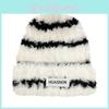 Knitted Striped Hat Embroidered Bean Hat Warm Winter Windproof Outdoor Gift Hat