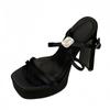 Fashion Liyke Summer Solid Black Silk Platform Sandals Women Sexy Thick Bottom Square Toe Diamond Designer High Heels Banquet Party Shoe