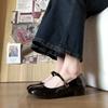 Patent leather Mary Jane shoes women's round head shallow mouth spring new product cross strap niche buckle square heel single shoes