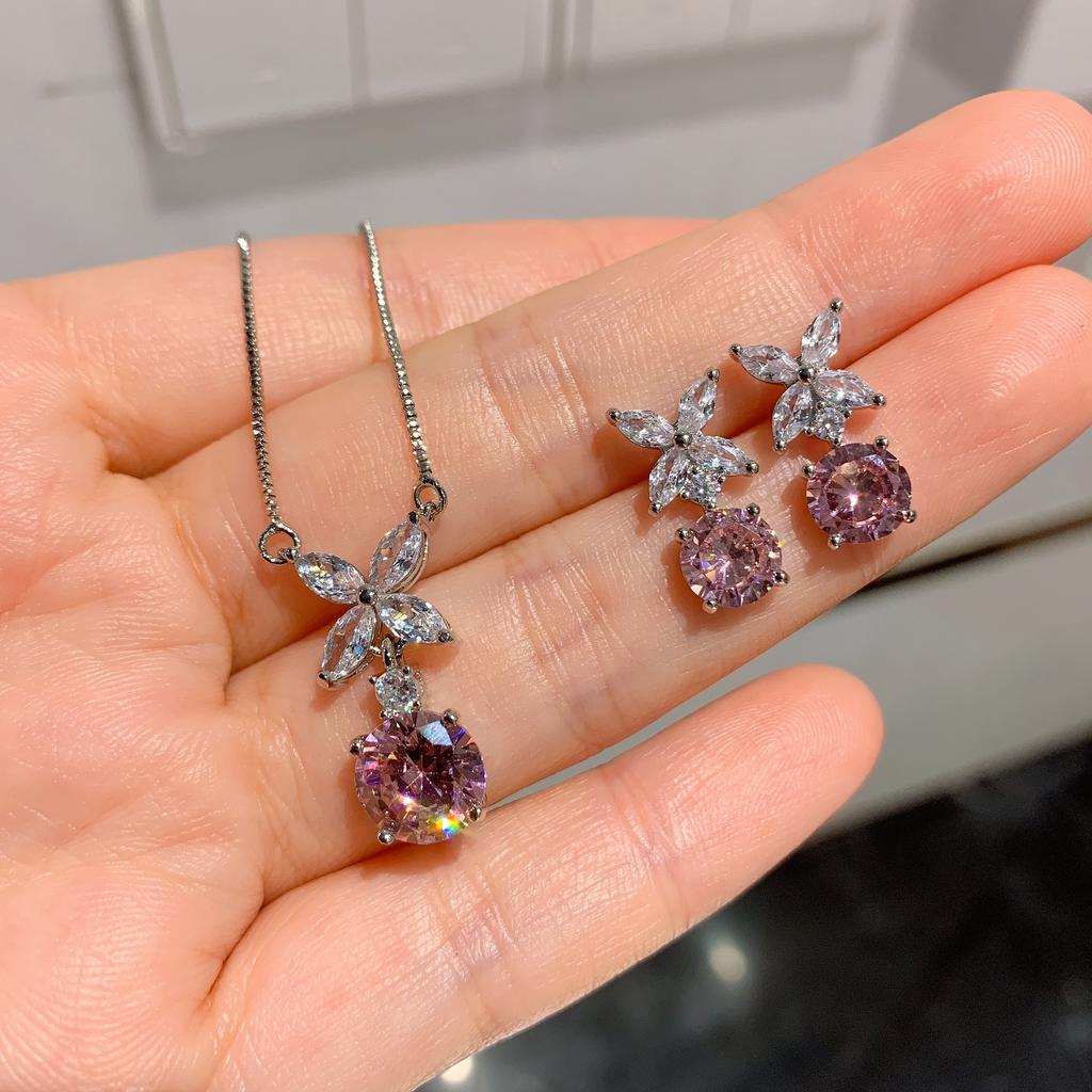 Jewelry Pop Necklace Vintage Color Treasure Simulation Pink Diamond Earrings Pendant Jewelry Set