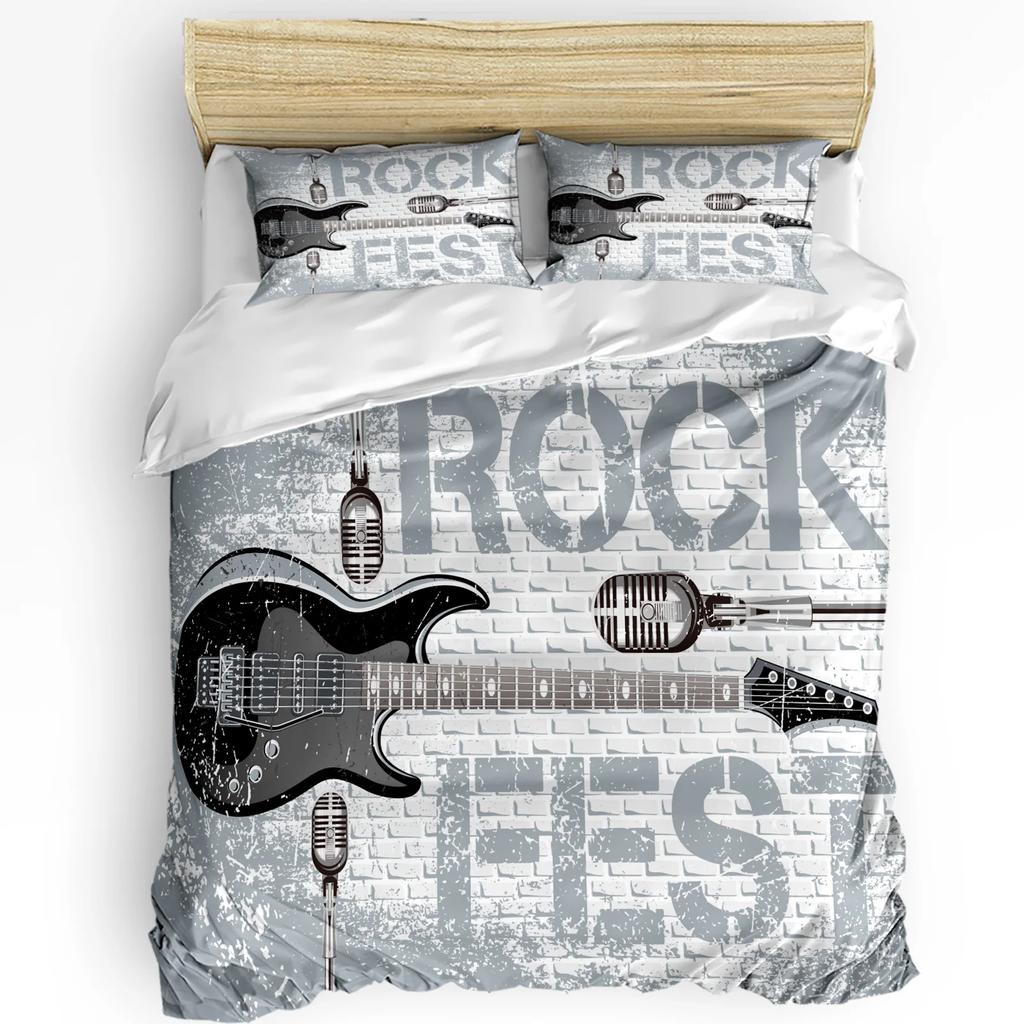 Rock Music Guitar Duvet Cover Bed Bedding Set For Double Home Textile Quilt Cover Pillowcases Bedroom Bedding Set (No Sheet)