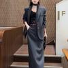 2024 Autumn Women's Solid Color Lapel Suit & Elegant Midi Skirt Set