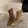2025 Korean version of the new niche design retro French short boots small square head western boots casual medium boots women's boots