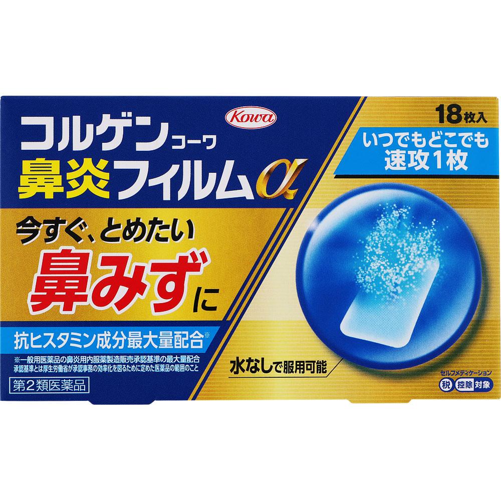 Kowa Corgen Kowa Nasal Film Cool α 18 sheets Nasal congestion medication (3 times daily) Indications: Relief of the following symptoms caused by acute rhinitis, allergic rhinitis, or sinusitis: sneezing, runny nose (excessive nasal discharge), nasal congestion, watery eyes, sore throat, heavy head (feeling of heaviness in the head)