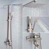 Níquel Escovado Chuveiro Chuveirinho Painel Torre Chuva Cachoeira Sistema de Massagem Jatos Torneira para Banheira e Bica Coluna de Chuveiro Torre