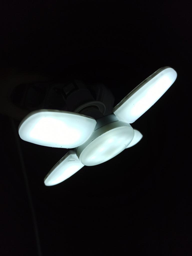 ❤️👍Купила эту лампу с регулируемыми “лепестками” и осталась очень довольна. Светит действительно очень ярко — заявленные 165–265 Вт по ощущениям соответствуют, освещает весь гараж. Благодаря тому что у неё 5 светодиодных секций, которые можно наклонять в разные стороны, легко настроить освещение под себя: можно направить свет шире, а можно — вниз, если нужно точечное освещение. Корпус прочный, складываются и раскладываются секции без люфта. При работе лампа практически не нагревается, что для мощных LED — огромный плюс. Свет ровный, без мерцания, глаза не устают. Устанавливается просто — вкручивается в обычный патрон, ничего дополнительно не нужно. Работает тихо, без жужжания. Прекрасно подходит в большие помещения, гаражи, сараи, мастерские, подвалы или просто туда, где нужен очень мощный свет. В целом лампа стоит своих денег: яркая, удобная, регулируемая и экономичная по энергопотреблению. Рекомендую!