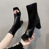 High-heeled short boots women's 2025 autumn and winter new toe breathable elastic sleeve fish mouth thick heel cool boots thin women's boots