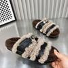 European metal buckle open-toed fluffy slippers women's 2025 new comfortable and lightweight one-pedal thermal slippers
