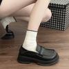 Coarse heel round head versatile British style black platform small leather shoes women's 2025 new summer one-pedal loafers